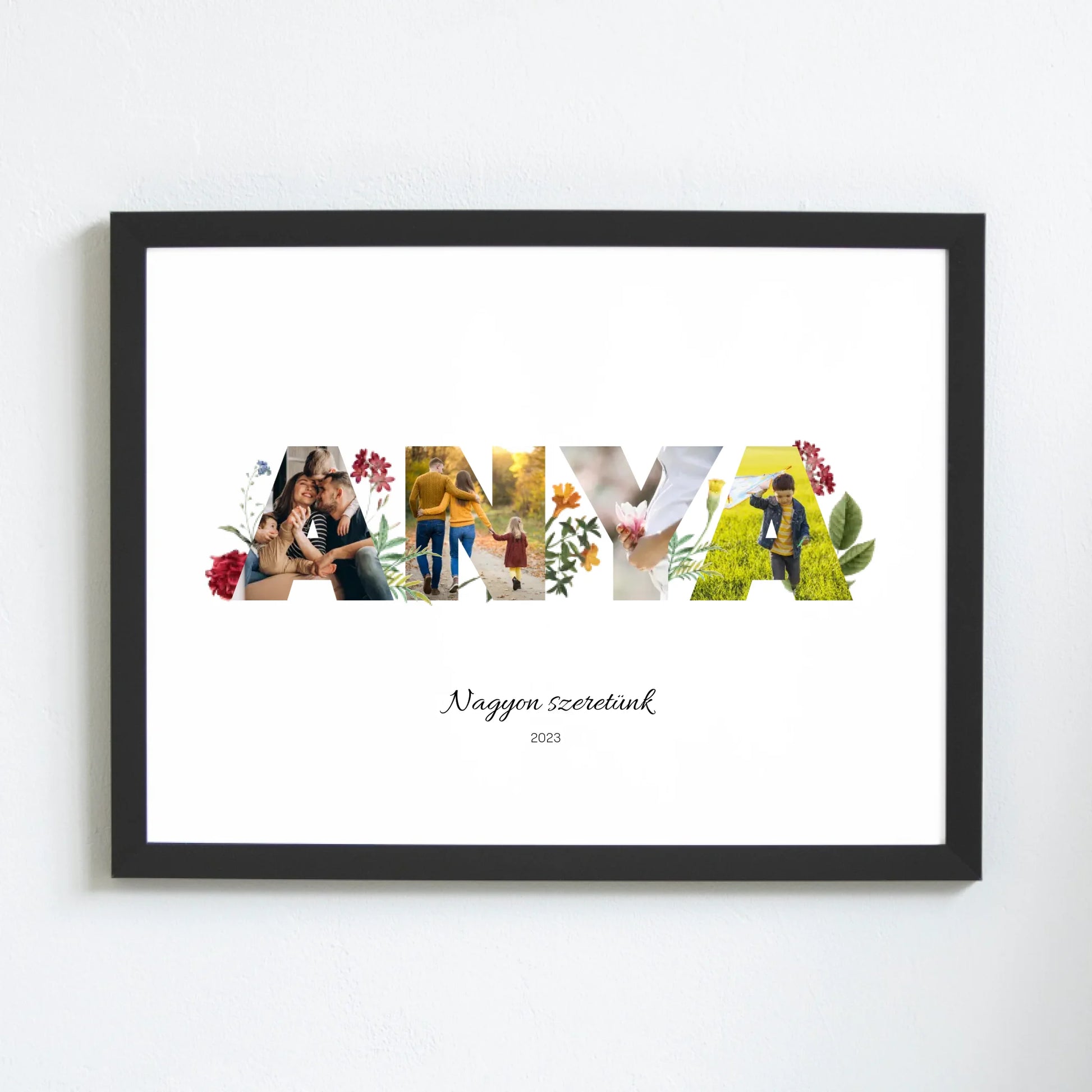 Lepd meg Édesanyádat egy szívhez szóló, egyedi faliképpel! Gyönyörű vadvirágok díszitik ezt az egyedi faliképet. Válassz 4 saját fényképet, add meg a kedves szöveget, a többit pedig bízd ránk!